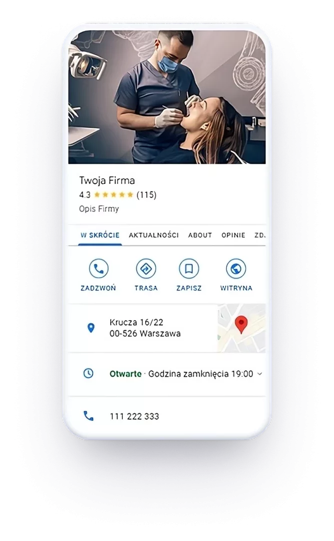 Wizytówki Google My Business to darmowe narzędzie, które pomaga firmom w zarządzaniu informacjami i widocznością online. Dzięki nim firmy są łatwiej odnajdywane przez klientów w wynikach wyszukiwania Google oraz na mapach Google Maps.